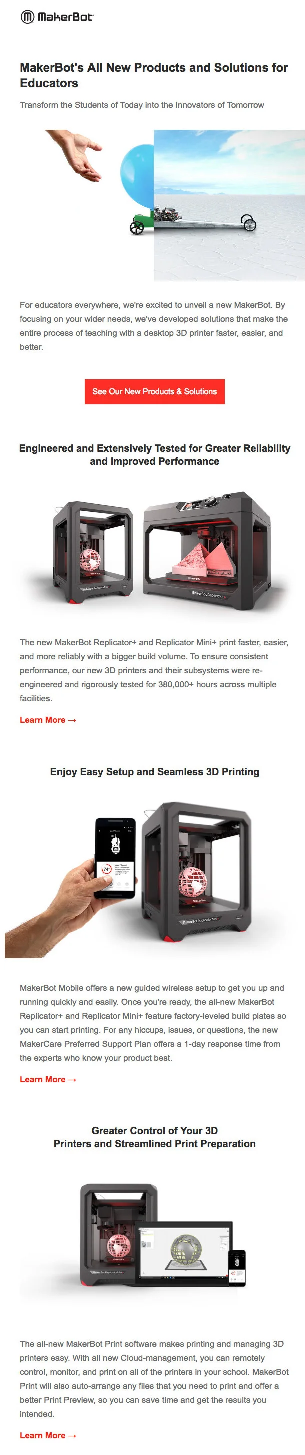 In the fall of 2016, MakerBot, the industry-leader in desktop 3D printing, launched five new solutions designed for the wider needs of professionals and educators. The Ideas in the Making campaign highlighted how these solutions improved the overall process of bringing ideas to life faster, easier, and more efficiently.