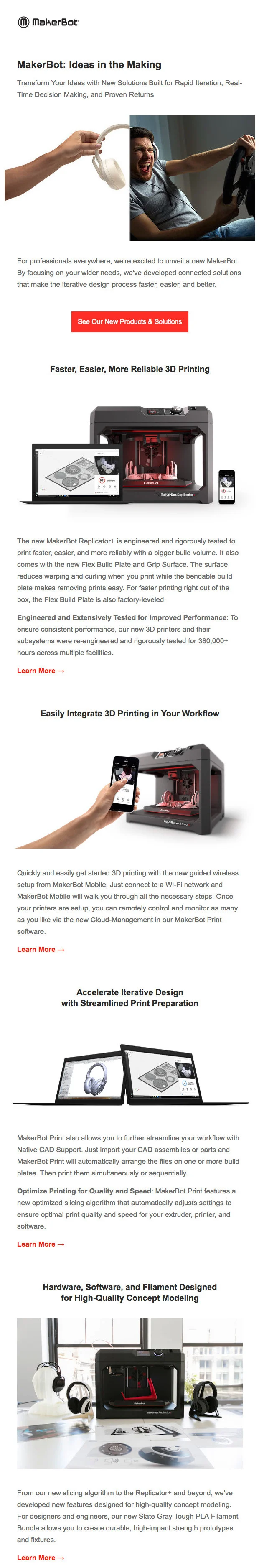 In the fall of 2016, MakerBot, the industry-leader in desktop 3D printing, launched five new solutions designed for the wider needs of professionals and educators. The Ideas in the Making campaign highlighted how these solutions improved the overall process of bringing ideas to life faster, easier, and more efficiently.